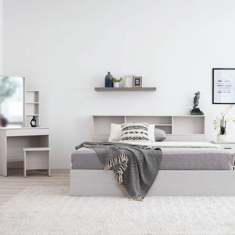 1-180X200 King Bed, 1-Night Stand, 1- Dresser with 1-Mirror and 1- Stool